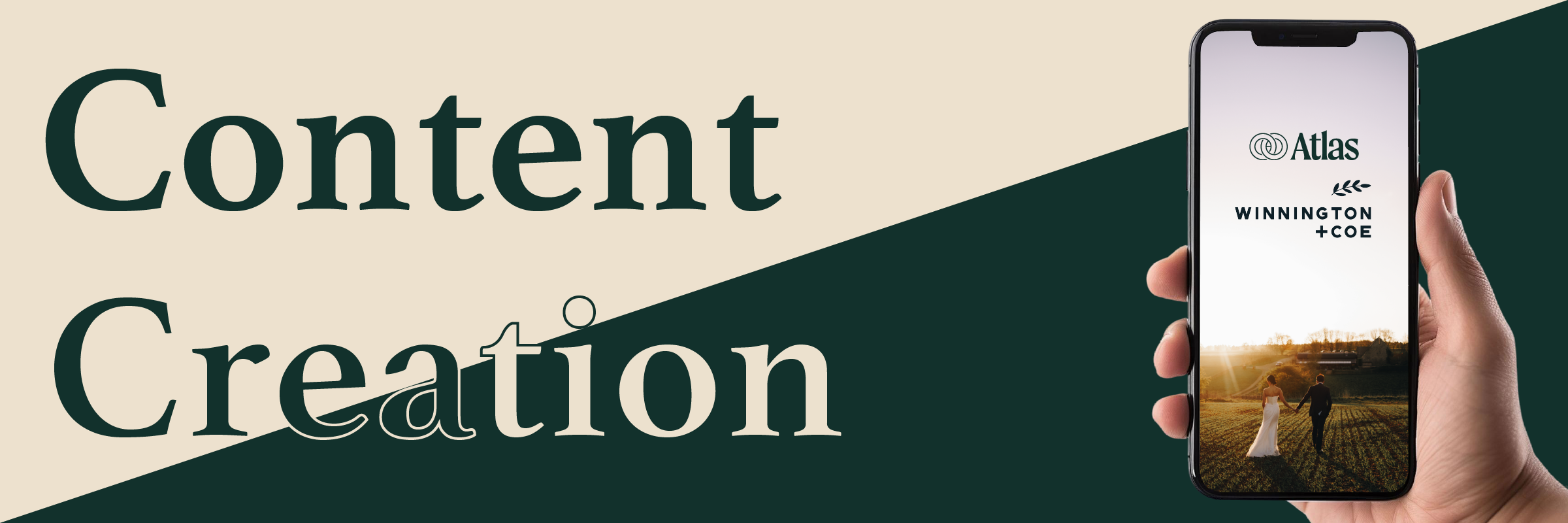 Between Winnington + Coe and Atlas wedding films, we have pooled together our decade of wedding experience to ensure that our content creator would not impact your experience of your day, but enhance it, leaving you with a camera roll full of candid clips and reels which you will love to look back on and spend hours scrolling through.